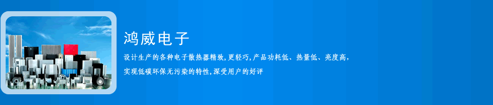 鎮(zhèn)江新區(qū)鴻威電子散熱器廠位于電子散熱器生產(chǎn)基地—江蘇鎮(zhèn)江新區(qū),是專業(yè)研究生產(chǎn)電子散熱器與插片散熱器的廠家,產(chǎn)品主要包括電子散熱器、插片散熱器、型材散熱器、變頻器散熱器、led散熱器等。廣銷全國各地,贏得了廣大用戶的好評(píng)和信賴。鴻威全系列散熱器產(chǎn)品是大功率半導(dǎo)體器件配套的散熱器元件,適用于交直流電源、穩(wěn)壓電源、開關(guān)電源、通訊電源,凈化電源、廣播電視發(fā)射裝置、變頻電源、逆變電源,等各種電源產(chǎn)品。還適用于日光燈電子鎮(zhèn)流器,音響設(shè)備,功放電路,自動(dòng)控制儀表等電力電子產(chǎn)品領(lǐng)域。